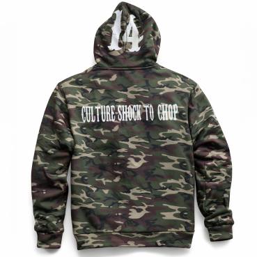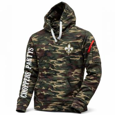 Woodland Design. Siebdruck : vorne Links mit Lilie ,Ärmel Rechts Choppers n Partys ,Hinten Rücken Culture Shock to Chop und Kapuze mit 14.