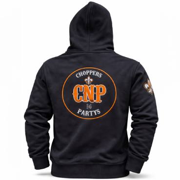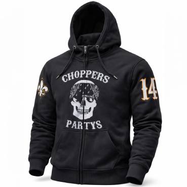 Mobile Preview: CnP Voll Gesticktes Choppers n Partys Black Skull Bandana Zipped Hood Hoodie in Schwarz Totenkopf Biker Motorrad