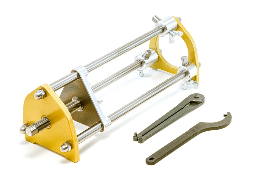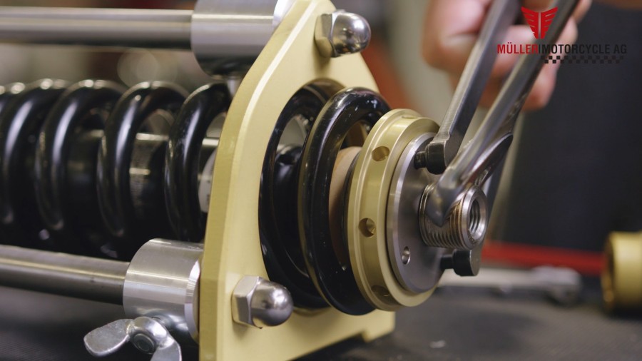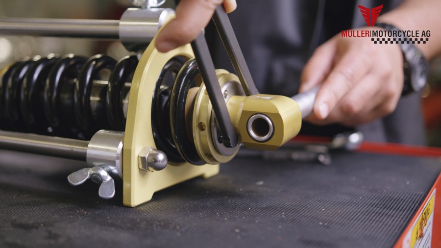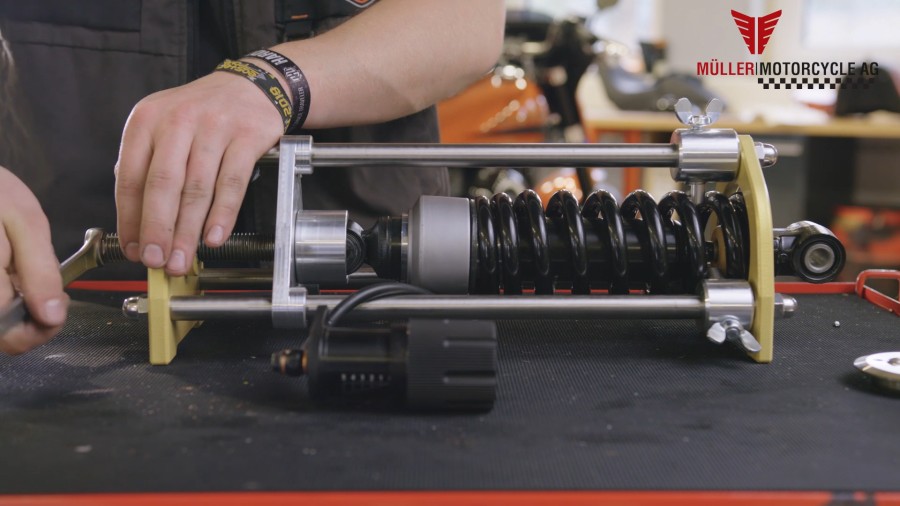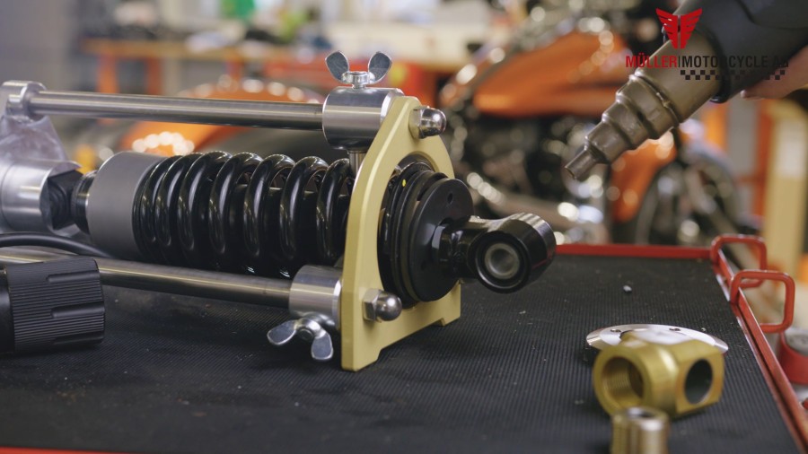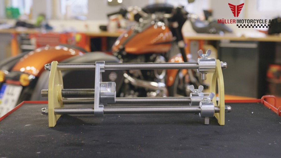 Für alle Werkstätten und Schrauberbuden ist unsere Federbeinpresse ein wichtiges Werkzeug um den Müller Tieferleger bei Milwaukee-Eight Modellen zu montieren. Das Federbein wird sicher in die Presse eingespannt so dass alle Schritte bequem und einfach durchgeführt werden können. So wird die Montage des Tieferleger zum Kinderspiel.