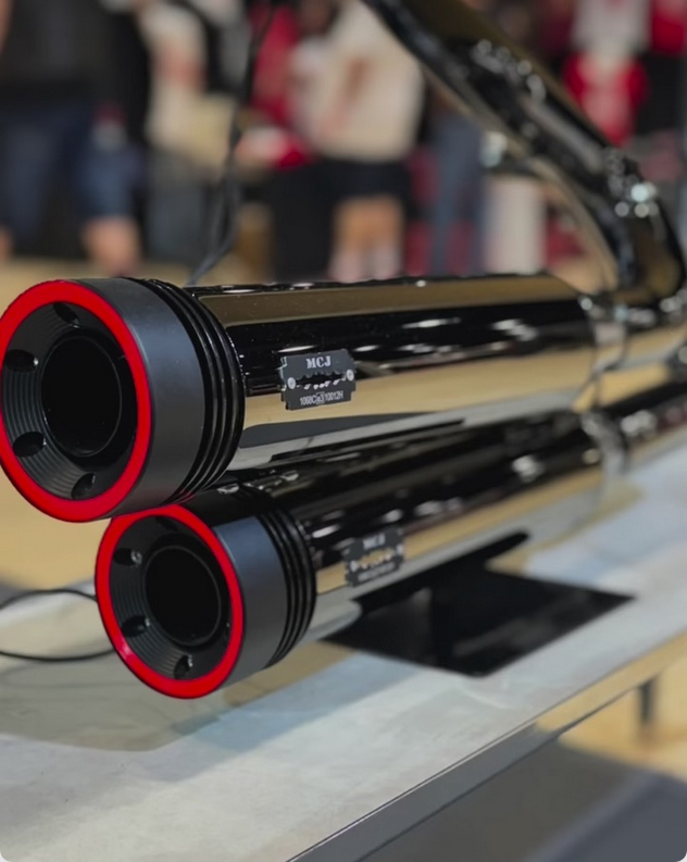 MCJ - 2 in 2 Black Nickel in 120 Durchmesser Endkappe B073 oder B080 mit 3 Punkt Motorschalter Elektrisch - FÜR TOURING , Street Glide , Road Glide , Road King AB BJ. 2021