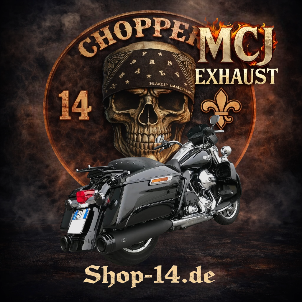 MCJ - 2 in 2 Edition 120 Durchmesser, in Schwarz oder Chrom, mit Endkappen B080 oder B073 - FÜR TOURING , Street Glide , Road Glide , Road King AB BJ. 2021