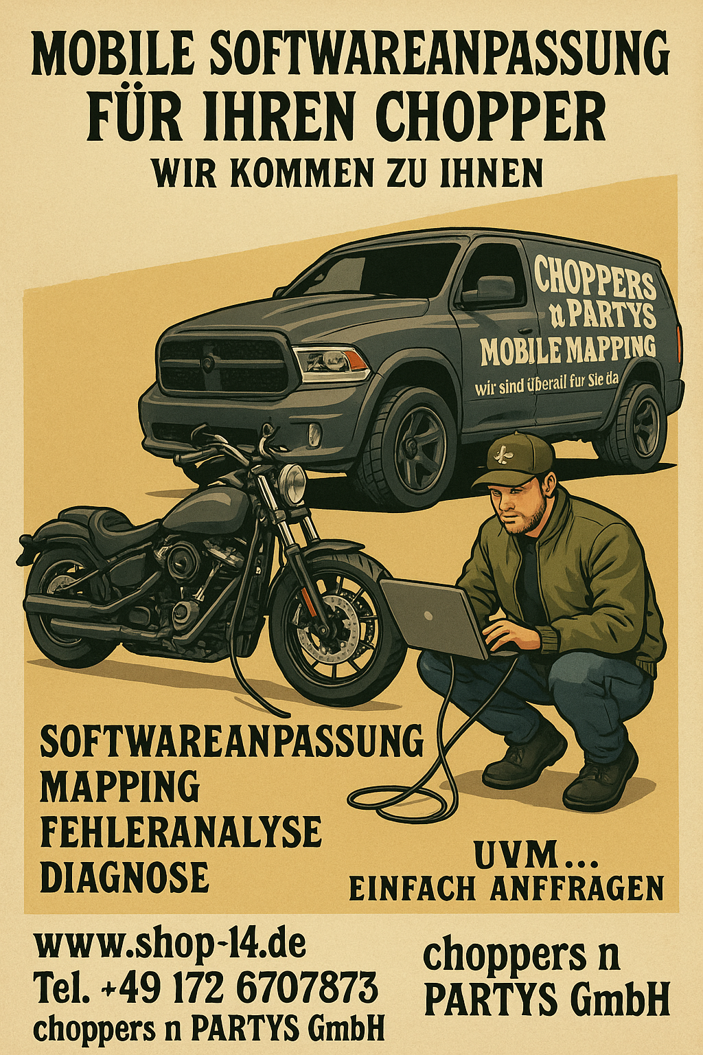 Mobile Softwareanpassung für Ihren Chopper - Wir kommen zu Ihnen. Mapping, Fehleranalyse, Diagnose, uvm... für Marken Harley-Davidson® - Indian® - Victory® - BMW®