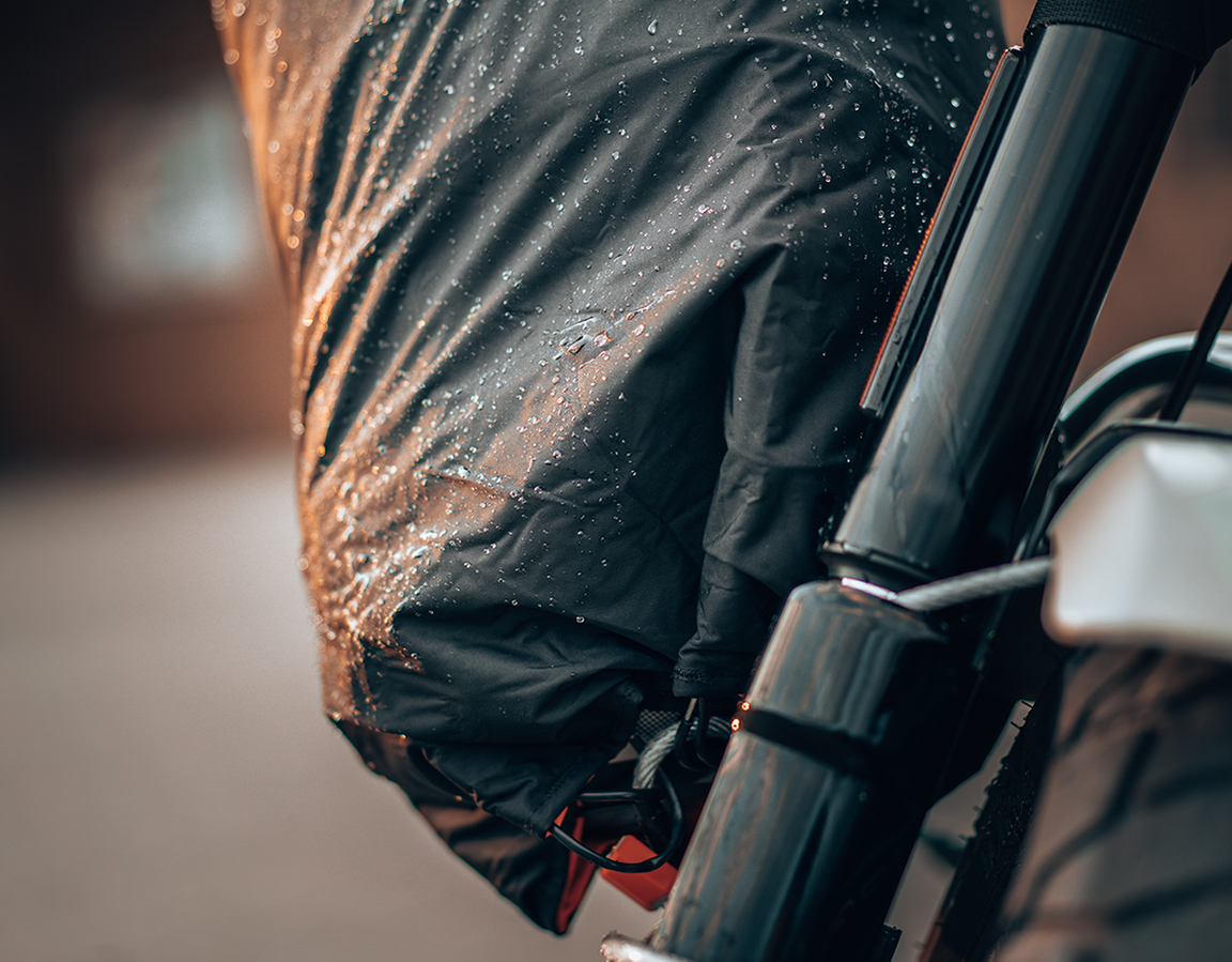 Die Tasche wird mit einer speziellen Klettschlaufe so am Lenker befestigt, dass die Öffnung nach unten zeigt. In dieser Position ist der Inhalt vollständig vor Regen geschützt. Ideal für teure Elektronik (Laptop, Tablet, Navi), die Sie nicht unbeaufsichtigt lassen wollen.